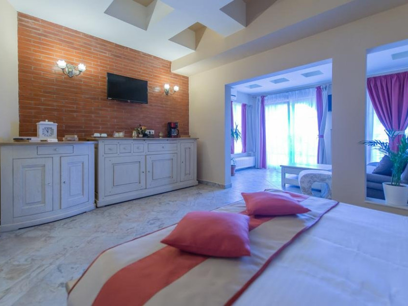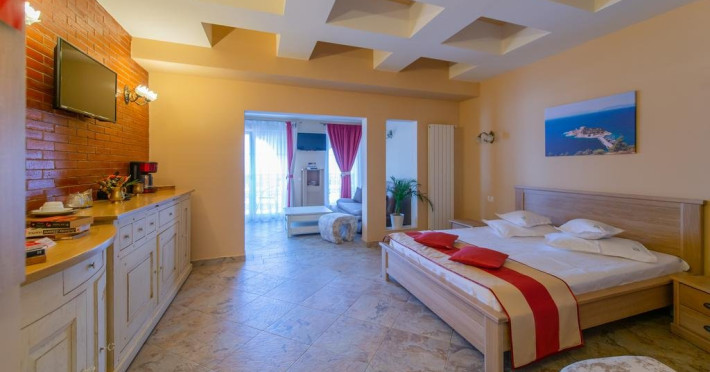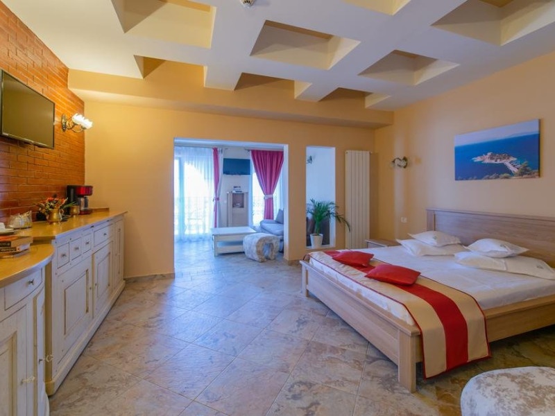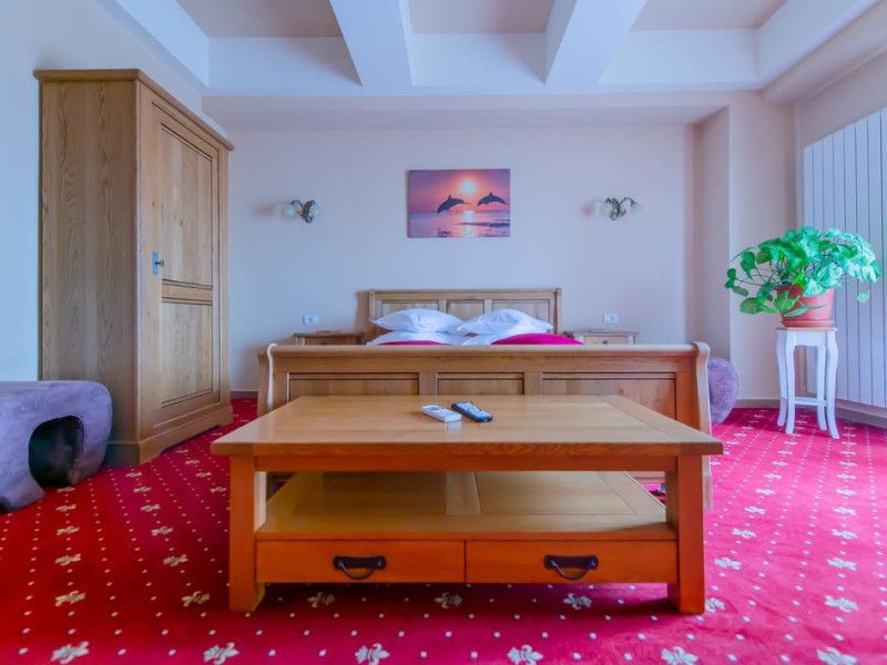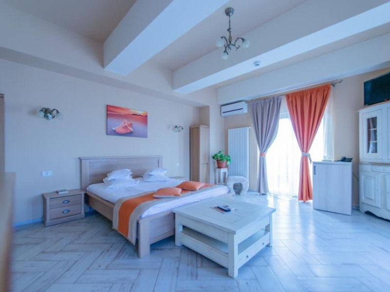 Daca vii cu familia ta in vacanta, Apartamentul Junior este pentru voi. Un ansamblu compus din living cu canapea extensibila si dormitor cu pat matrimonial. Dimensiunea este de 42 mp.
