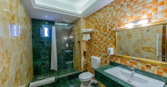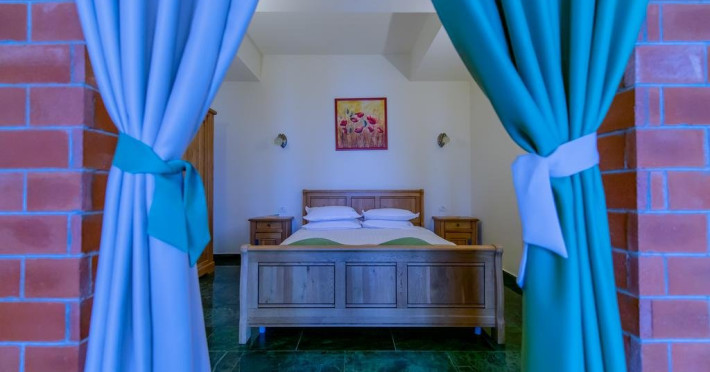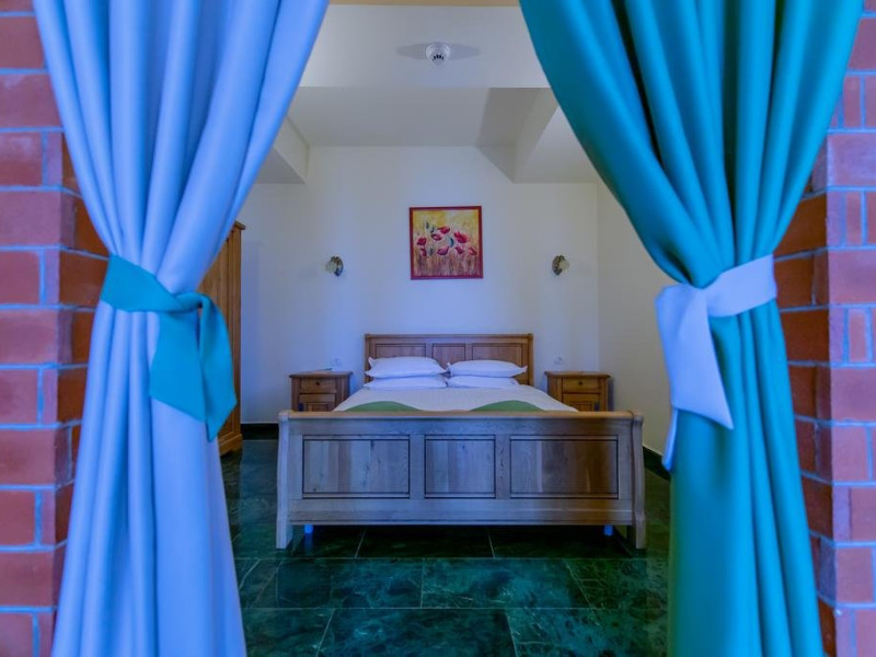 Camerele sunt spatioase, personalizate, decorate in stil frantuzesc, cu mobila din stejar masiv. Baile au gresie si faianta din onix, iar blaturile la chiuvete sunt din marmura verde.