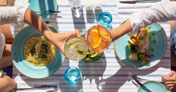 La Gf Victoria oaspeții au la dispoziție 3 restaurante unde pot savura mâncăruri delicioase, în stil bufet sau à la carte. Preparate din bucătăria locală, internațională și mediteraneană așteaptă să fie degustate în fiecare zi la micul dejun, prânz și cină. Masa poate fi servită atât în interior, cît si în aer liber, pe terasă, în funcție de vreme. 2 baruri, dintre care unul la piscină, sunt disponibile cu o ofertă variată de băuturi răcoritoare și alcoolice. Pentru cei cu anumite nevoi de nutriție, Gf Victoria oferă meniuri pentru diete speciale.