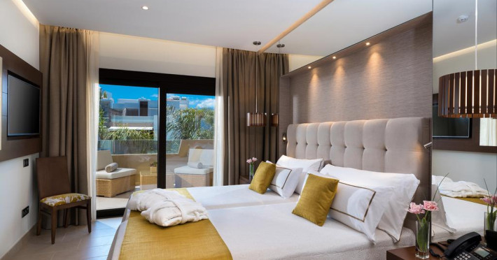 Sunt disponibile 242 camere. Unele camere au balcon cu vedere la mare sau la piscină. Fiecare cameră dispune de un aparat pentru preparare cafea sau ceai, cană-fierbător și minibar. Oaspeții pot solicita serviciul de room service pentru a servi masa sau diverse băuturi. În camere există baie cu cadă sau duș, foehn, articole de toaletă gratuite, precum și halate de baie și papuci. Camerele luminoase de la Gf Victoria sunt dotate cu parchet, aer condiționat, Tv și seif. Oaspeții au acces gratuit la serviciul Wi-fi în camere. Curățenia in cameră se face zilnic. Proprietatea oferă camere pentru familie cu o suprafață mai mare și un număr mai mare de paturi față de cele standard.