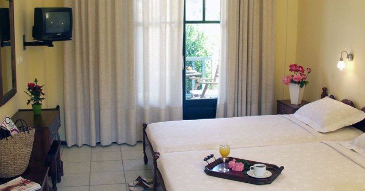 Camerele de la Giannikos au în dotare aer condiționat și Tv. În camere există baie cu duș prevăzută cu foehn. Unele camere au balcon cu vedere la grădină sau la piscină. Oaspeții au acces gratuit la serviciul Wi-fi în camere. Curățenia in cameră se face zilnic. Fiecare unitate de cazare are frigider. Proprietatea oferă camere pentru familie cu o suprafață mai mare și un număr mai mare de paturi față de cele standard. Se pot rezerva de asemenea camere pentru nefumători.