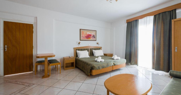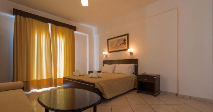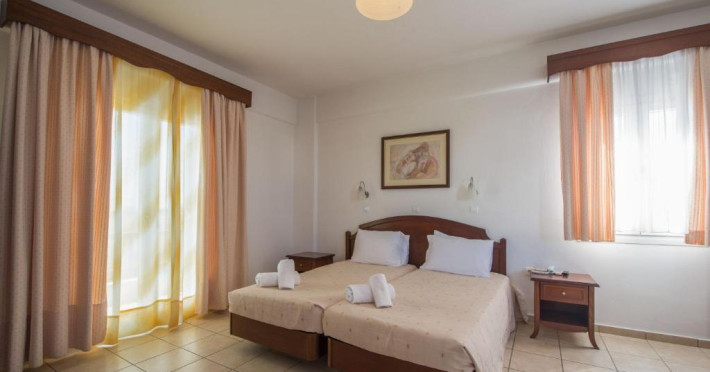 Camerele luminoase de la Giannoulaki sunt dotate cu aer condiționat, Tv și seif. Oaspeții au la dispoziție serviciul de room service pentru a servi masa sau diverse băuturi. În camere există baie cu cadă sau duș ce are în dotare foehn și articole de toaletă gratuite. Oaspeții au acces gratuit la serviciul Wi-fi în camere. Curățenia in cameră se face zilnic. Proprietatea oferă camere pentru familie cu o suprafață mai mare și un număr mai mare de paturi față de cele standard.