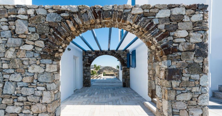 Cel mai apropiat aeroport este Aeroportul Mykonos, situat la o distanță de 2,5 km. La cerere proprietatea organizează transfer la/de la aeroport.