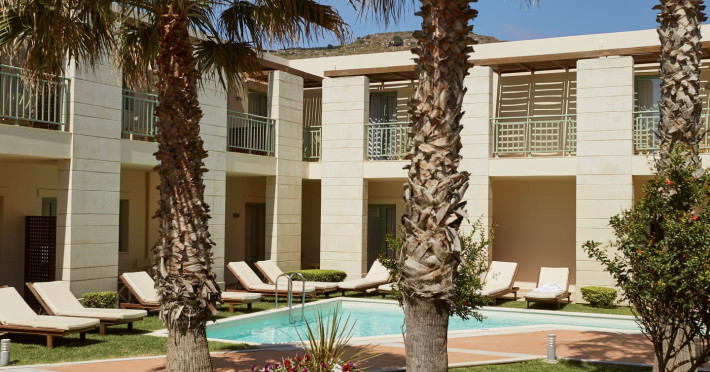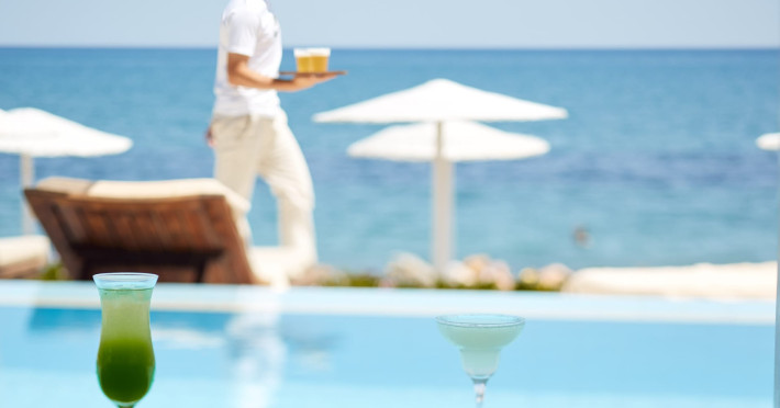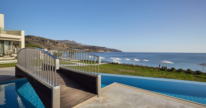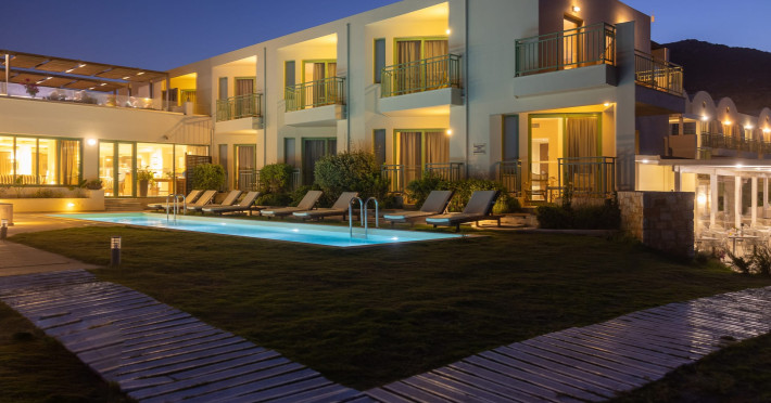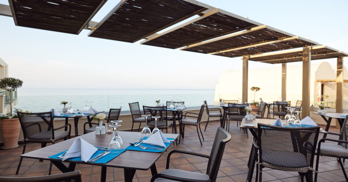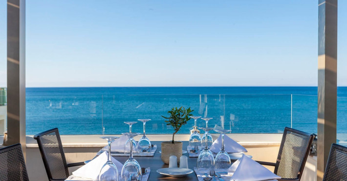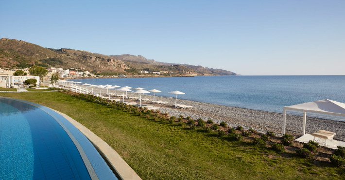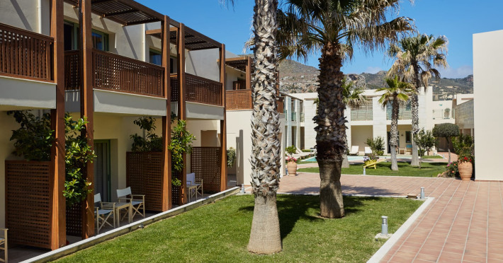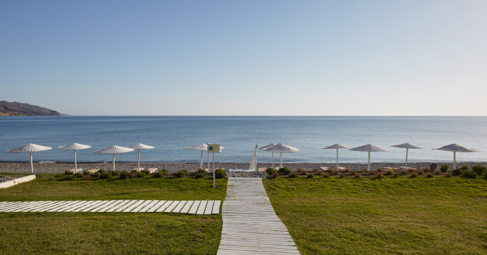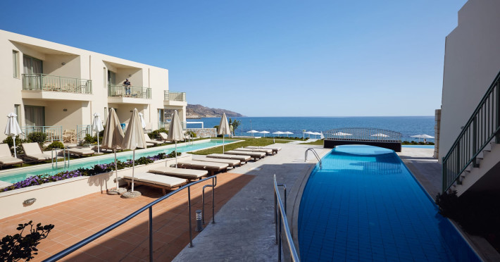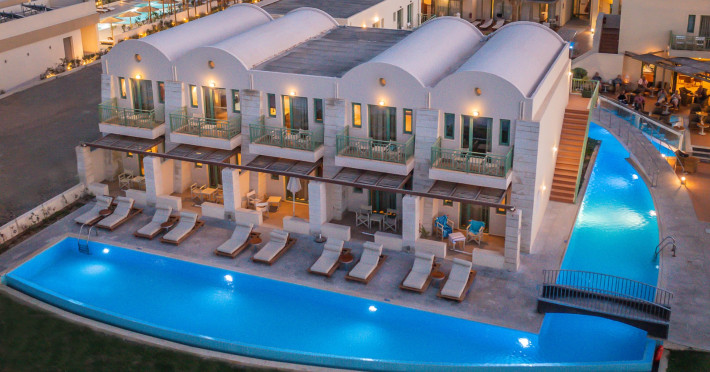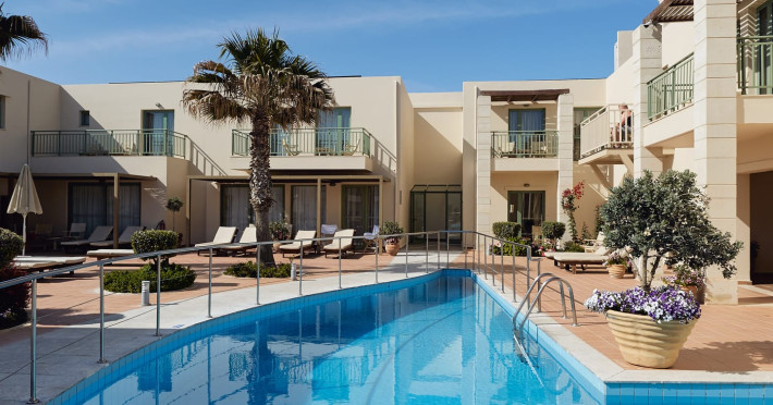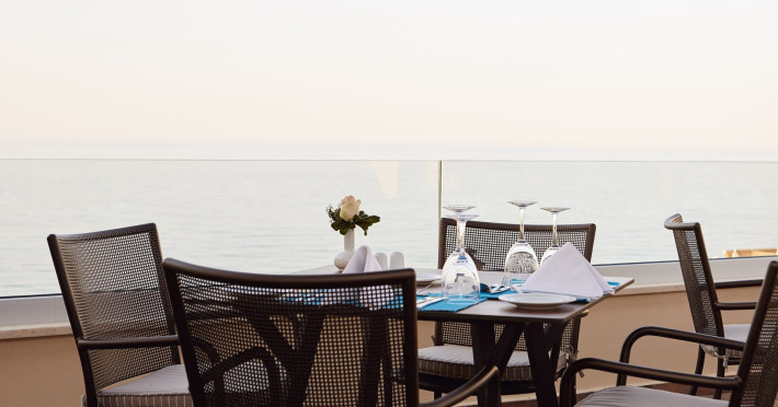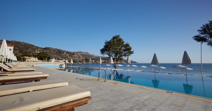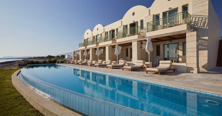 Like an island within an island, this is Giannoulis Grand Bay Beach Resort. Understated design, attention to detail, instinctive hospitality, tasteful food, and a personalised approach are only a few of the ingredients which make our small island a very special getaway, ideal for individuals who seek tranquillity and calmness, excellent cuisine, and upgraded spaces and services. Giannoulis Grand Bay Beach Resort is located directly on the 3 km long sandy beach of the scenic fishing village of Kolymbari, amongst scenery of unparalleled beauty, and near settlements that retain their traditional Cretan character, just 23 km west of the most picturesque town of Crete, Chania and about 35km away from its international airport. The famous Samaria Gorge is only 42 km away, while the spectacular White Mountains of Crete overlook the green valley surrounding the hotel. Here the villages follow one another and the landscape changes accordingly: the sea, the mountains, the plains and the gorges, the picturesque cafés and the hidden little taverns combined with the infinite blue of the sky and the sea create images that rivet the visitorâs attention. Its geographical position is the ideal starting point for your excursions in the inexhaustible opulence of nature and the numerous archaeological sites of Crete, or for endless relaxing hours on the beach gazing the endless blue of the Gulf of Chania. Eco-friendly materials, including marble, wood, and stone, typical of traditional Cretan architecture blend with modern design, and low-level buildings mix harmoniously with nature and the blessed surroundings to offer upgraded accommodation and services of the highest standards. Inspired by natureâs gift to the local environment, colored by the crystal clear bay, the hotelâs design concept is to offer to its guests direct access to the water; either that is the hotelâs four swimming pools, or the stunning waters of the gulf. The resortâs private beach on the shores of the beautiful Aegean Sea covers 200 meters and represents only a small stretch of the 3 km long Kolymbari beach. The Hotelâs beach is also awarded with the Blue Flag for maintaining the high standards of the international Blue Flag Organization regarding safety, quality of waters and general infrastructure of the beach. Nestled amongst the hotelâs buildings there are four crystal clear fresh water swimming pools surrounded by terraces, and patios with stylish sun beds and umbrellas. Dining facilities are excellent since the guests have a choice between the Hotelâs Buffet Restaurant, the roof-top sea-front âAzzuroâ A la Carte Restaurant, the sea-front âSea Lineâ Greek Tavern, an enriched Room Service menu, and private dining directly on the beach under the star lighted sky. The hotelâs restaurants combine the traditional Cretan nutrition and the international cuisine. Simplicity, freshness, seasonal ingredients brought from local markets, old fashioned Cretan and Greek recipes with a rediscovered homey touch, unpretentious but smart presentation, friendly prices and service with a smile. Our Chefâs numerous delicious proposals and our wide variety of Greek and foreign wines will introduce you to a journey in the world of tastes. The Lobby Bar offers the best in atmosphere, and drinks and serves as the hotelâs meeting and reference point. The Pool barâs location is hard to find elsewhere: right on the beach-front drinks are accompanied with the sounds of the sea, and dramatic sunsets. Leisure activities include a gym, the brand new âLa petite Spaâ offering a range of soothing massages and wellness treatments designed by the Greek APIVITA® brand, a sauna, and a seafront wellness kiosk. Same time, in order to initiate its guests to the local gastronomy and culture, the hotel organizes, on a weekly basis, wine tasting with small local family-run vineyards, olive-oil tasting, and cooking lessons, totally free of charge. Additionally a selective choice of daily fun active classes (pilates, aerobics etc), walking paths, boat trips and excursions to many interesting sights is readily available. Giannoulis Grand Bay Beach Resort operating as an âAdults Exclusiveâ (minimum age of guests is 16 years of age) seaside resort, offers a luxurious, relaxing, child-free environment, and tailor-made facilities for solos, and couples in a totally serene environment designed to pamper body, soul and spirit in upgraded surroundings with impeccable service. The friendly and cordial staff of the Grand Bay Resort will offer you the true essence of Cretan hospitality and will make a unique experience out of your stayDatorita dinamicitatii domeniului disponibilitatea ofertelor se modifica de la un moment la altul. De aceea ofertele sunt valabile in limita locurilor disponibile. Agentia nu este responsabila pentru eventualele neconcordante care pot aparea intre informatiile privind tarifele si alte detalii din site si informatiile primite in agentie. In aceste cazuri vor avea prioritate, intotdeauna, informatiile primite in agentie.