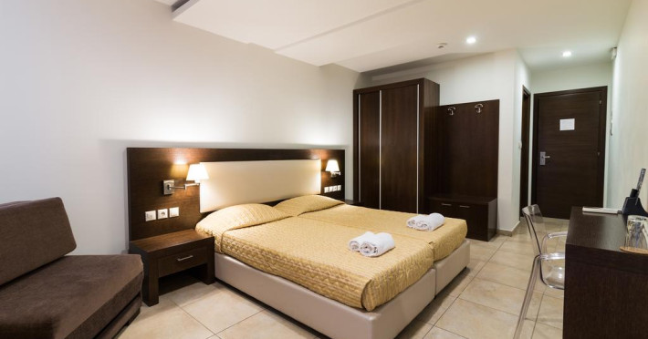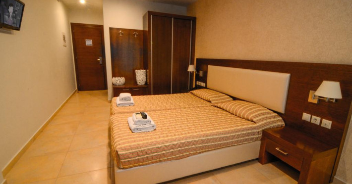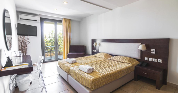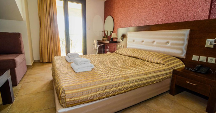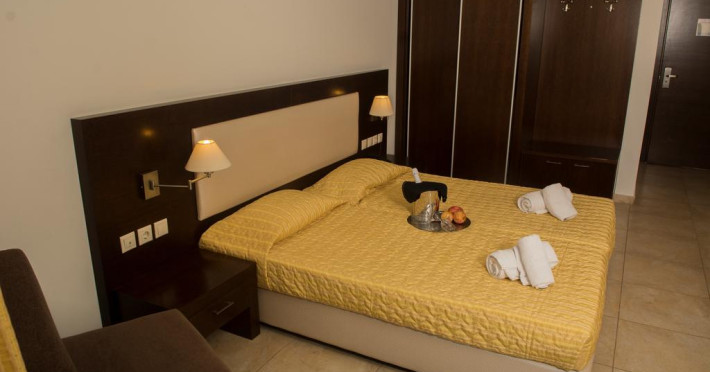 Camerele confortabile de la Giannoulis au pardoseală de gresie/ marmură, aer condiționat, Tv cu canale prin satelit și seif. Unele camere au balcon cu vedere la mare sau la piscină. În camere există baie cu cadă sau duș ce are în dotare foehn și articole de toaletă gratuite. Fiecare cameră dispune de minibar. Oaspeții pot solicita serviciul de room service pentru a servi masa sau diverse băuturi. Oaspeții au acces gratuit la serviciul Wi-fi în camere. Curățenia in cameră se face zilnic. Toate camerele spațioase de la Giannoulis au zonă de relaxare cu canapea, ceea ce oferă un plus de confort. Fiecare unitate de cazare are frigider. Proprietatea oferă camere pentru familie cu o suprafață mai mare și un număr mai mare de paturi față de cele standard. Se pot rezerva de asemenea camere pentru nefumători.