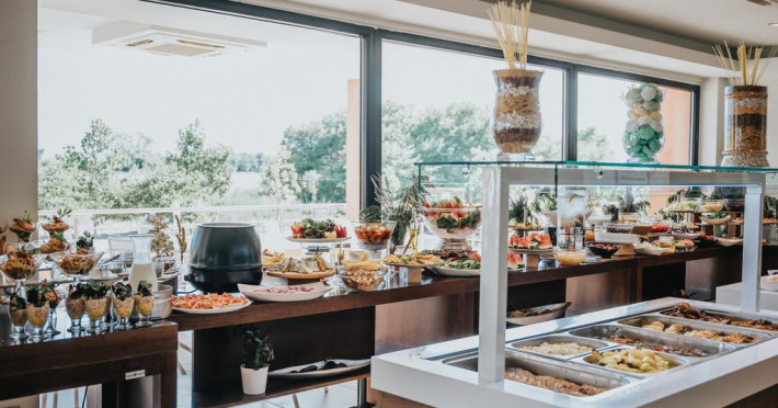 La Giannoulis oaspeții au la dispoziție un restaurant care servește mâncare în stil bufet. Masa poate fi servită atât în interior, cît si în aer liber, pe terasă, în funcție de vreme. Oaspeţii pot avea diverse băuturi răcoritoare sau alcoolice la bar. De asemenea , în cadrul proprietății, există cafenea și snack bar ideale pentru o gustare rapidă. Pentru cei care doresc să ia masa în natură, Giannoulis pune la dispoziție o zonă de picnic.