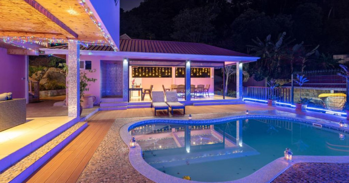 Situată pe insula Mahe, Glacis Heights Villa se află la 7 minute de mers cu mașina de plaja Beau Vallon și la 15 minute de mers cu mașina de centrul orașului Victoria. Aeroportul Internațional Seychelles poate fi accesat in 35 de minute de mers cu mașina.