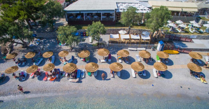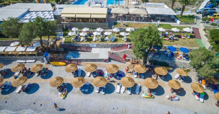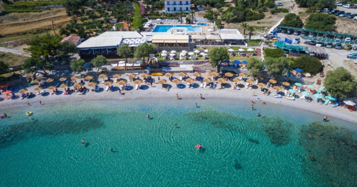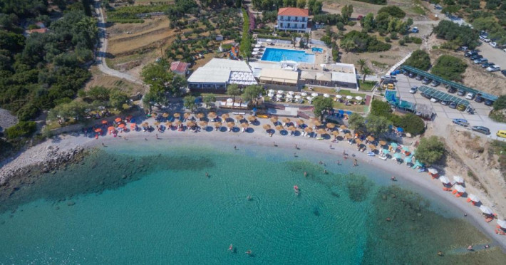 Hotelul la plajă, ideal pentru turiști de la plajă și familii, se află la Pythagorio chiar pe malul mării, centrul orașului Pythagorio se află la cam 2 km distanță. La stațiile mijloacelor locale de transport în comun se poate ajunge după aproximativ 400 de m. Cel mai apropiat aeroport este Samos (SMI), distanța este de aproximativ 6 km.