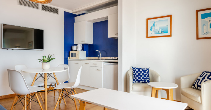 The accommodation Globales Apartamentos Cala Viñas is located approximately 300 m from a beach. The hotel has a 24h reception, Wi-Fi as well as a lift. In the outdoor area you will find a pool that is open seasonally, where sun loungers and sun umbrellas are available for free. Furthermore, outside you can find a terrace. If necessary, you can contact the medical centre (for a fee). If you want to explore the holiday region, you can use the car rental service close to the hotel (extra fee). Euro/Master Card and Visa are accepted as means of payment. Due to its barrier-free facilities the hotel is also suitable for wheelchair users. Distances