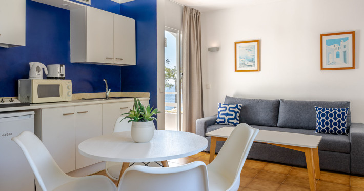 The accommodation Globales Apartamentos Cala Viñas is located approximately 300 m from a beach. The hotel has a 24h reception, Wi-Fi as well as a lift. In the outdoor area you will find a pool that is open seasonally, where sun loungers and sun umbrellas are available for free. Furthermore, outside you can find a terrace. If necessary, you can contact the medical centre (for a fee). If you want to explore the holiday region, you can use the car rental service close to the hotel (extra fee). Euro/Master Card and Visa are accepted as means of payment. Due to its barrier-free facilities the hotel is also suitable for wheelchair users. Distances- Nearest town: approximately at 25 km