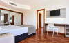 Just a few meters away from a sandy beach is located the accommodation Hotel Globales Cala Viñas - Adults Only. The city centre is around 15 km away. On the beach are cushions and sun umbrellas for a fee available. The air-conditioned hotel has a 24h reception, a lobby bar, Wi-Fi, internet access, 5 lifts, a shop as well as parking spaces (for a fee). In the outdoor area of the property you will find a heated pool that is open seasonally (open from May to October), where sun loungers and sun umbrellas are available for free. Furthermore, outside you can find a sun terrace. Inside the hotel you can use an indoor pool. There is also a laundry service available at an additional cost to customers. If necessary, you can contact the medical centre (for a fee). The energy supply is 220 Volts. For conventions and other business meetings, the hotel offers a business centre as well as EXTRA_FEE conference rooms with a total of 225 seats as well as internet access. If you want to explore the holiday region, you can use the car rental service close to the hotel (extra fee). At the reception, tickets are offered for excursions in the area. Euro/Master Card and Visa are accepted as means of payment. Catering As catering services the hotel offers all-inclusive, half board and breakfast only. Breakfast is offered from the buffet. Lunch and dinner are also served à la carte or from the buffet. For the meals, there are a buffet restaurant and the pool bar. The drinks menu of the hotel includes water, soft drinks and wine. Distances- Nearest town: approximately at 20 km