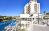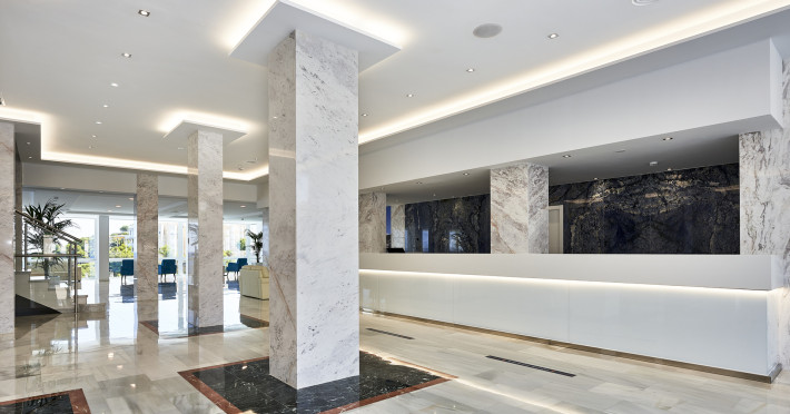 Just a few meters away from a sandy beach is located the accommodation Hotel Globales Cala Viñas - Adults Only. The city centre is around 15 km away. On the beach are cushions and sun umbrellas for a fee available. The air-conditioned hotel has a 24h reception, a lobby bar, Wi-Fi, internet access, 5 lifts, a shop as well as parking spaces (for a fee). In the outdoor area of the property you will find a heated pool that is open seasonally (open from May to October), where sun loungers and sun umbrellas are available for free. Furthermore, outside you can find a sun terrace. Inside the hotel you can use an indoor pool. There is also a laundry service available at an additional cost to customers. If necessary, you can contact the medical centre (for a fee). The energy supply is 220 Volts. For conventions and other business meetings, the hotel offers a business centre as well as EXTRA_FEE conference rooms with a total of 225 seats as well as internet access. If you want to explore the holiday region, you can use the car rental service close to the hotel (extra fee). At the reception, tickets are offered for excursions in the area. Euro/Master Card and Visa are accepted as means of payment. Catering As catering services the hotel offers all-inclusive, half board and breakfast only. Breakfast is offered from the buffet. Lunch and dinner are also served à la carte or from the buffet. For the meals, there are a buffet restaurant and the pool bar. The drinks menu of the hotel includes water, soft drinks and wine. Distances