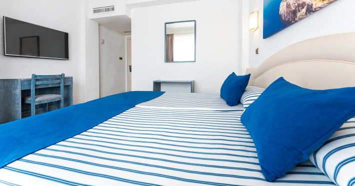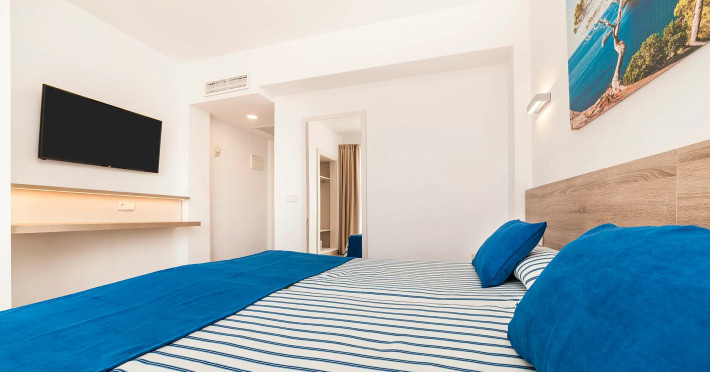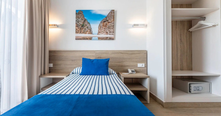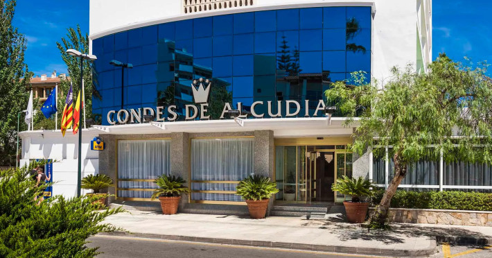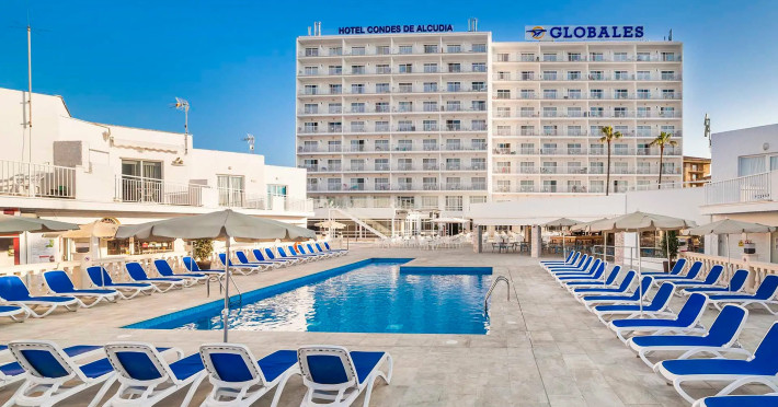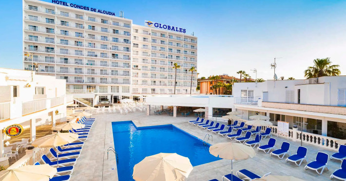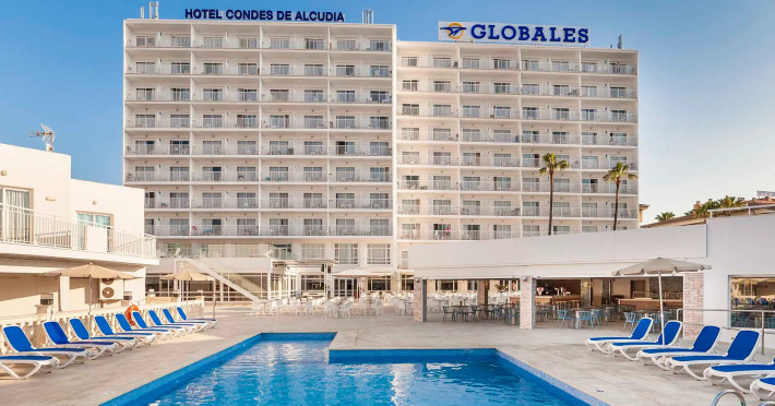 The hotel Hotel Globales Condes de Alcudia is located approximately 150 m from a beach. The hotel is equipped with a 24h reception, a lobby bar, Wi-Fi, 2 lifts as well as a TV lounge. In the outdoor area you will find a garden as well as a pool that is open seasonally, where sun loungers and sun umbrellas are available for free. There is also a separate children's pool. Furthermore, outside you can find a terrace. For the young hotel guests there is a playground. There is also a laundry service available at an additional cost to customers. If necessary, you can contact the medical centre (for a fee). The energy supply is 220 Volts. For conventions and other business meetings, the hotel offers EXTRA_FEE conference rooms. If you want to explore the holiday region, you can use the car rental service close to the hotel (extra fee). Euro/Master Card and Visa are accepted as means of payment. Catering As catering services the hotel offers all-inclusive. Breakfast is offered from the buffet. Lunch and dinner are also served from the buffet. For the meals, there are a buffet restaurant and the pool bar. The drinks menu of the hotel includes water and wine. Distances