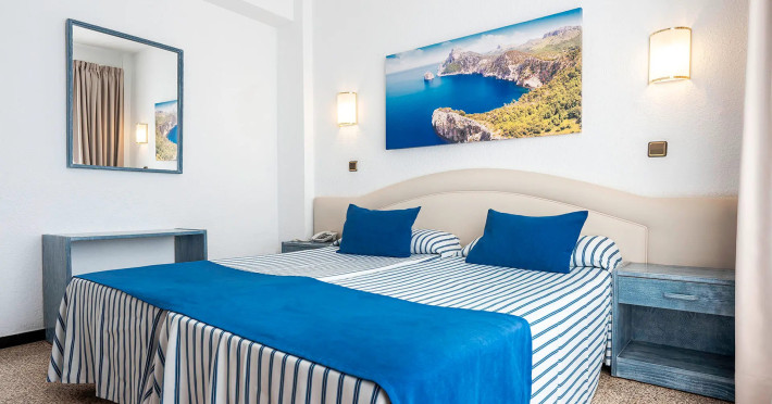 The hotel Hotel Globales Condes de Alcudia is located approximately 150 m from a beach. The hotel is equipped with a 24h reception, a lobby bar, Wi-Fi, 2 lifts as well as a TV lounge. In the outdoor area you will find a garden as well as a pool that is open seasonally, where sun loungers and sun umbrellas are available for free. There is also a separate children's pool. Furthermore, outside you can find a terrace. For the young hotel guests there is a playground. There is also a laundry service available at an additional cost to customers. If necessary, you can contact the medical centre (for a fee). The energy supply is 220 Volts. For conventions and other business meetings, the hotel offers EXTRA_FEE conference rooms. If you want to explore the holiday region, you can use the car rental service close to the hotel (extra fee). Euro/Master Card and Visa are accepted as means of payment. Catering As catering services the hotel offers all-inclusive. Breakfast is offered from the buffet. Lunch and dinner are also served from the buffet. For the meals, there are a buffet restaurant and the pool bar. The drinks menu of the hotel includes water and wine. Distances- Nearest town: approximately at 60 km