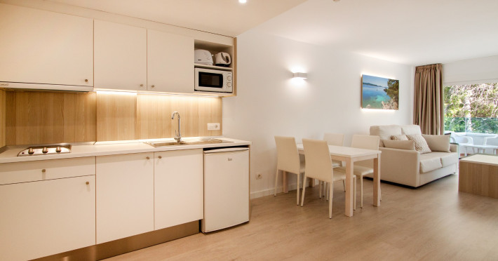 Comprising a total of 157 apartments/ studios spread over 6 floors, this complex comes with a bar and a laundry service..This comfortable apartment complex is located in the leisure district of Cala Ponsa just 350 m from a small bay. The beautiful main beach can easily be reached in a few minutes walk (approximately 950 m away) whilst there are shopping areas featuring boutiques, bars, restaurants and nightlife venues within a short distance of the complex. Links to the public transport network are some 500 m away..Each of the welcoming apartments comes with combined bedroom/ lounge, a bathroom, a separate bedroom, a direct dial telephone and a hire safe..In the outdoor complex is a swimming pool as well as a sun terrace with sun loungers and parasols laid out ready for use. It is possible to kick back and relax in the hotel sauna and sports enthusiast may make use of the hotel tennis courts and the in-house gym.Datorita dinamicitatii domeniului disponibilitatea ofertelor se modifica de la un moment la altul. De aceea ofertele sunt valabile in limita locurilor disponibile. Agentia nu este responsabila pentru eventualele neconcordante care pot aparea intre informatiile privind tarifele si alte detalii din site si informatiile primite in agentie. In aceste cazuri vor avea prioritate, intotdeauna, informatiile primite in agentie.