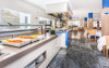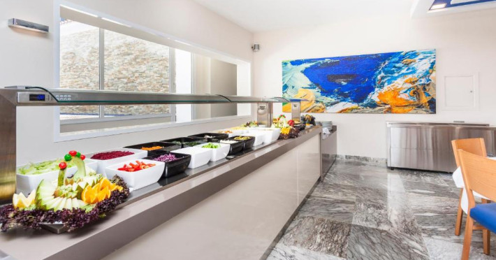 Oaspetii au la dispozitie un mic dejun tip bufet, iar proprietatea găzduieste 2 restaurante și un snack bar. De asemenea, oaspetii pot savura diferite băuturi pe terasa cu vedere la mare.
