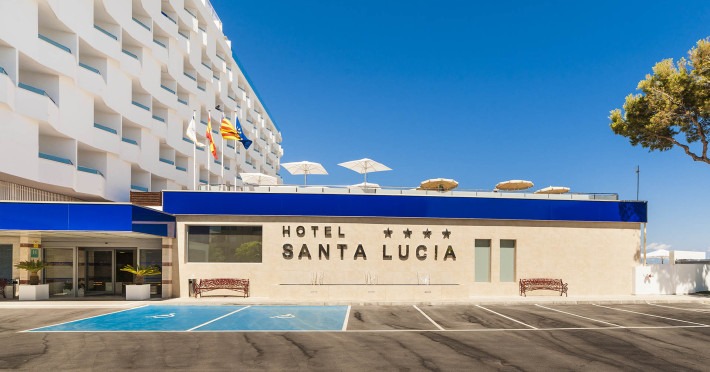 Just a few meters away from a beach is located the 4 star hotel Globales Santa Lucia. The hotel is equipped with a 24h reception, a lounge, Wi-Fi, 3 lifts, a jacuzzi as well as parking spaces. In the outdoor area you will find a pool that is open seasonally, where sun loungers and sun umbrellas are available for free. Furthermore, you can relax outdoors on the sun terrace. Inside the hotel you can use a heated indoor pool. There is also a laundry and ironing service available at an additional cost to customers. If necessary, you can contact the medical centre (for a fee). The energy supply is 220 Volts. If you want to explore the holiday region, you can use the car rental service close to the hotel (extra fee). Euro/Master Card and Visa are accepted as means of payment. Due to its barrier-free facilities the hotel is also suitable for wheelchair users. Catering Breakfast is offered continental or from the buffet. Lunch and dinner are also served from the buffet. For the meals, there are a buffet restaurant and the pool bar. Distances- Nearest town: approximately at 15 km