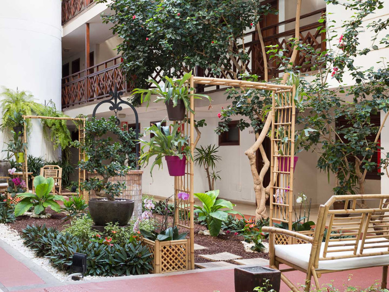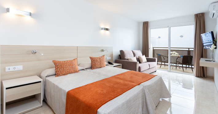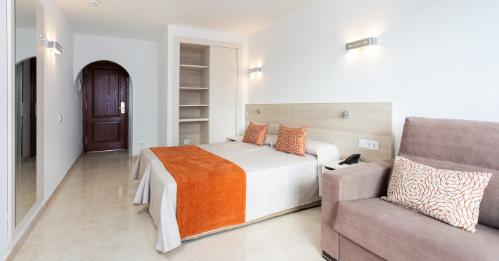 The accommodation Globales Tamaimo Tropical is located approximately 2 km from a beach. The hotel has a 24h reception, 7 lifts, a jacuzzi as well as showers and changing rooms. In the outdoor area of the property you will find a garden as well as a heated pool that is open seasonally, where sun loungers and sun umbrellas are available for free. There is also a separate children's pool. Furthermore, you can relax outdoors on the sun terrace. For very young guests, cots can also be provided. There is also a laundry service available at an additional cost to customers. If necessary, you can contact the medical centre (for a fee). The energy supply is 220 Volts. If you want to explore the holiday region, you can use the car rental service close to the hotel (extra fee). Euro/Master Card and Visa are accepted as means of payment. Due to its barrier-free facilities , such as barrier-free entrances, the hotel is also suitable for wheelchair users. Catering As catering services the hotel offers all-inclusive. Breakfast is offered from the buffet. Lunch and dinner are also served from the buffet. For the meals, there are a buffet restaurant and the pool bar. The drinks menu of the hotel includes water, soft drinks, beer and wine. Distances