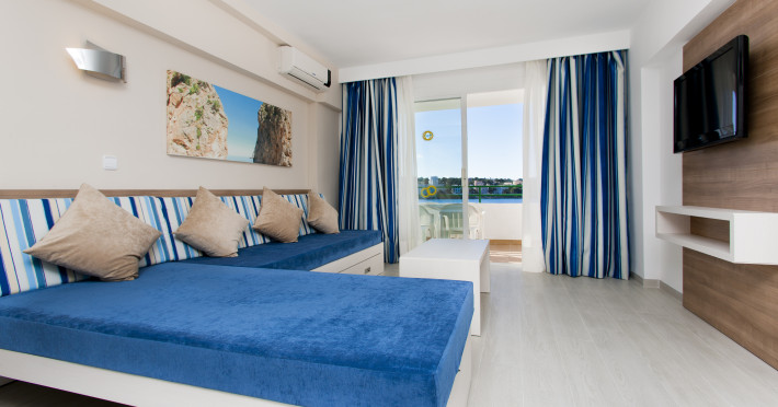 Family-friendly apartments set in front of the sea with magnificent views of Santa Pona Bay. Guests will be able to find a number of shops, restaurants, bars and taverns nearby. Walking distance from the hotel, public transport networks are available. Palma de Mallorca city is a 15-minute drive and the Airport is just 30 km away. The hotel is welcoming guests with well-equipped rooms for a pleasant holiday. Each unit is fitted with A/C, satellite TV, a fridge and kitchenette, bathroom with hair dryer and a balcony. Services until 31. 03. 25Cleaning:for stays longer than 3 days, alternative days. Towels:on cleaning days. Linen:1 change for stays between 5 and 7 days. Pool open. Lifeguard service: 10h to 18h. Sunbeds: 3, 50/day. Bar: 8. 30am to 18. 30pm (opening date depending on occupancy). Restaurant closed (open in March, depending on occupancy). No entertainment. Wifi: free. Premium ()Family-friendly apartments set in front of the sea with magnificent views of Santa Pona Bay. Guests will be able to find a number of shops, restaurants, bars and taverns nearby. Walking distance from the hotel, public transport networks are available. Palma de Mallorca city is a 15-minute drive and the Airport is just 30 km away. The hotel is welcoming guests with well-equipped rooms for a pleasant holiday. Each unit is fitted with A/C, satellite TV, a fridge and kitchenette, bathroom with hair dryer and a balcony. Services until 31. 03. 25Cleaning:for stays longer than 3 days, alternative days. Towels:on cleaning days. Linen:1 change for stays between 5 and 7 days. Pool open. Lifeguard service: 10h to 18h. Sunbeds: 3, 50/day. Bar: 8. 30am to 18. 30pm (opening date depending on occupancy). Restaurant closed (open in March, depending on occupancy). No entertainment. Wifi: free. Premium ()