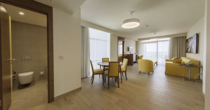 În camere există baie cu cadă sau duș prevăzută cu foehn. Camerele luminoase de la Gloria Sports Arena sunt dotate cu aer condiționat și Tv cu canale prin satelit. Curățenia in cameră se face zilnic.