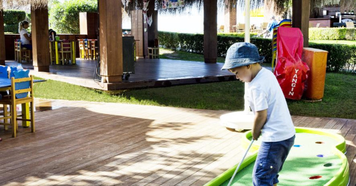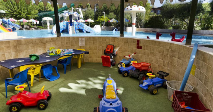 Proprietatea este o alegere potrivită pentru familiile cu copii. Cei mici se pot distra în aer liber la piscina pentru copii, prevăzută cu tobogan cu apă sau în locul de joacă special amenajat. Pentru orele toride cei mici pot opta pentru clubul amenajat la interior, unde există jocuri și programe de animație. Copiii au la dispoziție jocuri și puzzle-uri. Pentru cei mai mici Gloria Verde Resort oferă cărucioare și servicii de babysitting.
