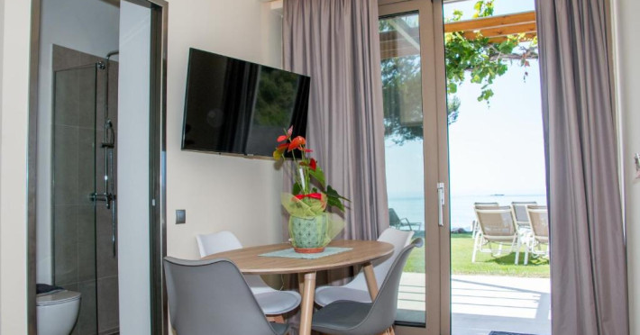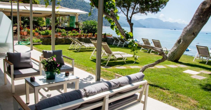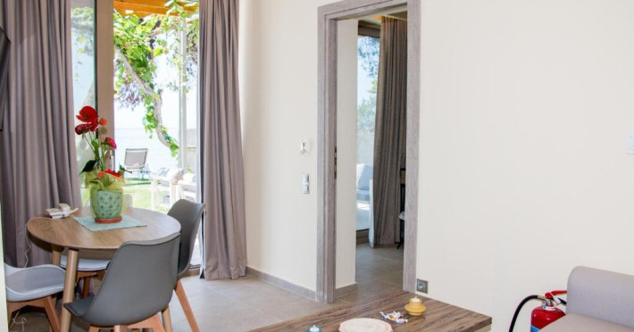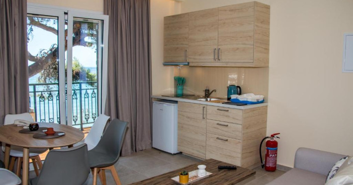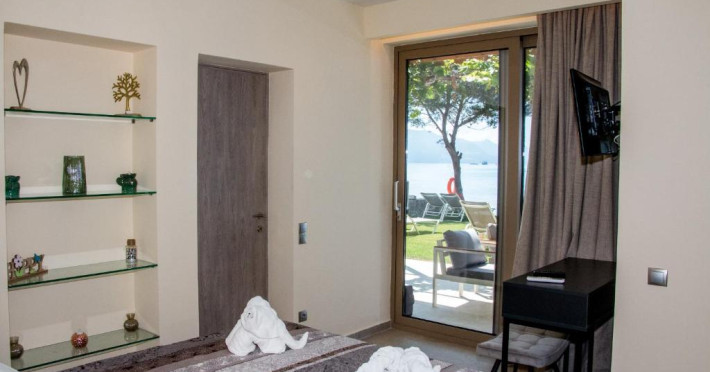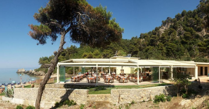 In the hotel’s seaside restaurant, guests can taste local dishes and seafood while enjoying the sunset over the Ionian Sea.