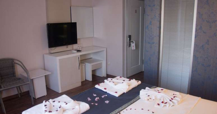 Camerele luminoase de la Gold Butik sunt dotate cu aer condiționat și Tv cu canale prin satelit. În camere există baie cu duș ce are în dotare foehn și articole de toaletă gratuite. Fiecare cameră dispune de minibar. Camerele au balcon cu masă și scaune unde pot fi petrecute momente de relaxare. Curățenia in cameră se face zilnic.