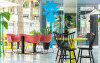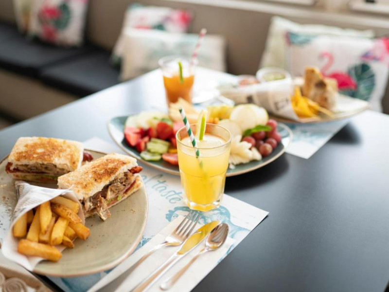 Restaurantul hotelului serveste un mic dejun bogat in fiecare zi, pană la ora 12:00. Oaspeții pot lua masa de pranz langă piscină, iar barul oferă cocktailuri. Zona mare de relaxare a hotelului, Planetarium, cu planete suspendate de tavan este un loc excelent pentru a se relaxa savurand un cocktail.