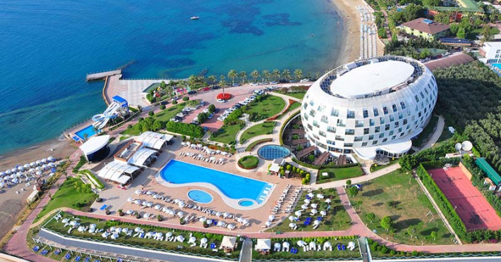 Localizare: Gold Island Hotel 5* ilustrează o formă ovală, deține o amplasare deosebită, fiind situat pe o peninsulă, înconjurat de o plajă privată. În regiunea Alanya, stațiunea Turkler, la 20 km distanță de centrul stațiunii Alanya și 100 km distanță de aeroportul din Antalya. Facilități incluse: restaurant principal, 2 restaurante à-la-carte, piscină, plajă privată, internet wifi, bar, teren de tenis, teren de baschet, teren de volei pe plajă, sală de fitness, spa și centru de wellness, terasă, grădină, seif, lift, facilități pentru persoane cu mobilitate redusă. Facilități contra-cost: masaj, servicii de transfer, servicii de curățătorie, săli de conferințe, ziare, babysitting. IMPORTANT: Descrierea hotelului se bazează pe detaliile disponibile la momentul pregătirii tarifelor pentru sezonul turistic ce urmează a se desfășura și are caracter pur informativ. Hotelul poate aduce modificări de structură, denumiri camere, tip servicii incluse/neincluse și altele, fără a notifica în prealabil. Pentru informațiile oficiale vă rugăm să consultați website-ul hotelului.IMPORTANT