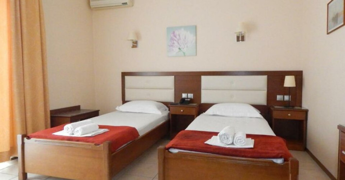 Gold Stern, a family-operated establishment, enjoys a prime location just 100 meters away from the stunning Paralia Katerinis beach and the town center. Guests are treated to a scenic view from the hotel and can relish in the homemade family breakfast served at the on-site restaurant. The reception operates 24/7, dedicated to ensuring a warm welcome and fulfilling guests needs throughout their vacation. Comprising 16 comfortable rooms, Gold Stern provides all the amenities for a relaxing retreat following a day spent on Paralia Katerinis expansive beach. Each room includes conveniences like a fridge, air conditioning, a private terrace, telephone, safe box, SAT TV, bathroom with a shower, and WiFi access. The hotel offers a choice between bed and breakfast or half-board options. The bed and breakfast package entail a buffet-style breakfast, while the half-board package includes both breakfast (buffet) and dinner (set menu) served at Regina Mare. ROOMS: Single room 1-1 pax, max 1 adults Standard room 2-3 pax, max 2 adults Standard room for 3 persons 2-3 pax, max 3 adultsDatorita dinamicitatii domeniului disponibilitatea ofertelor se modifica de la un moment la altul. De aceea ofertele sunt valabile in limita locurilor disponibile. Agentia nu este responsabila pentru eventualele neconcordante care pot aparea intre informatiile privind tarifele si alte detalii din site si informatiile primite in agentie. In aceste cazuri vor avea prioritate, intotdeauna, informatiile primite in agentie.