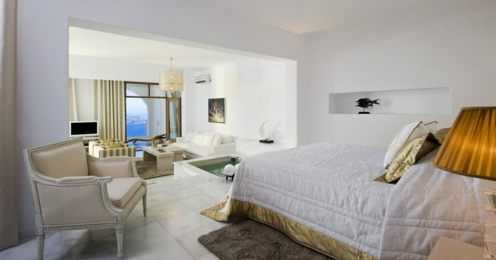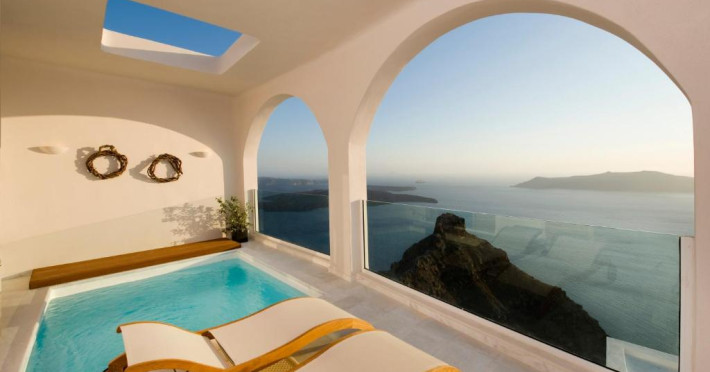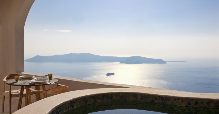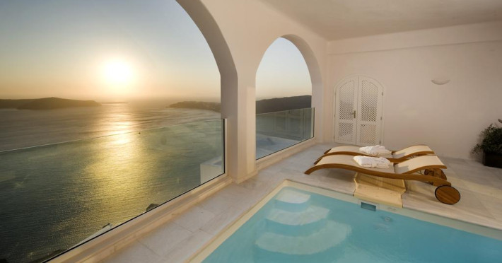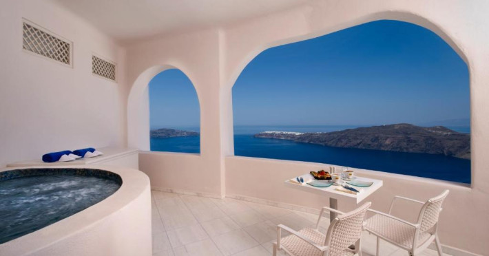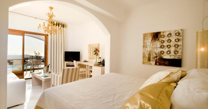 Gold Suites este o proprietate de 3 stele situată în Imerovigli (Santorini) care oferă camere cu vedere la mare, un restaurant, o piscină în aer liber și o terasă cu șezlonguri și umbrele de soare. Proprietatea are servicii de recepție cu program non - stop, concierge și închirieri auto. Se oferă acces gratuit la internet Wi-fi în spațiile publice.