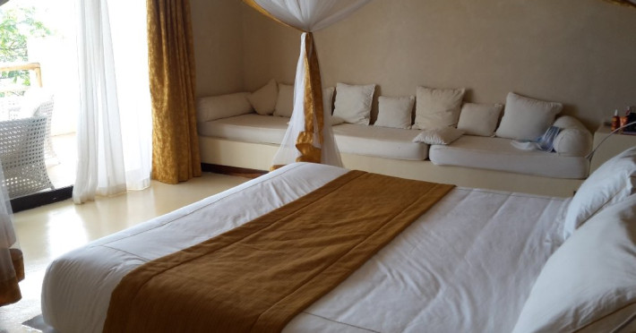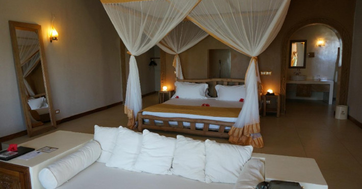Beach Suite: Beach Suite si Beach Suite Pavilion, aceste suite cu o suprafata de 90mp se afla la doar cativa pasi de plaja si de facilitatile principale. Aceste camere combina luxul si confortul unei locatii excelente, ideale pentru iubitorii de ocean si pentru cei ce doresc sa se bucure din plin de Zanzibar. Toate suitele au un dormitor spatios cu pat king-size, o zona confortabila cu 2 canapele extensibile, ideale pentru familii. Suitele sunt dotate cu aer conditionat, ventilator, TV LCD, seif, minibar, facilitate pentru prepararea de ceai sau cafea. Baile sunt frumos decorate cu mosaic Italian si dotate cu produse de baie selectionate.