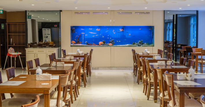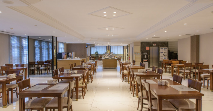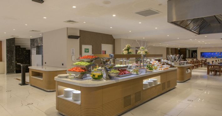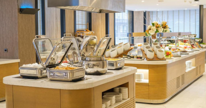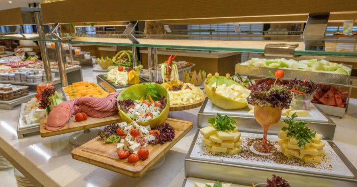 Există diverse locuri unde se poate lua masa: un restaurant pentru nefumători, o sală de mese, o cafenea și un bar. La centrul de cazare se oferă spre rezervare pachete de servicii cu mic dejun inclus. La mic dejun clienții se servesc de la bufetul bogat. Diverse mâncăruri à la carte pot fi alese la prânz și cină.