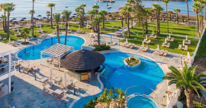 The Golden Bay Beach Hotel is an exclusive 5-star luxury hotel, set in mature landscaped gardens on the beautiful island of Cyprus. Perfectly situated at the edge of Larnaca tourist area, the Hotel is just 10 km from the city centre and 15 km from Larnaca International Airport. Instilled with a blend of Mediterranean colour and culture, the Golden Bay Beach 5 star Hotel in Larnaca is renowned for its excellent facilities, luxurious surroundings, impeccable hospitality and haute cuisine.Nestled on the edge of the tourist area of Larnaka, the Golden Bay Beach Hotel is your destination to unwind, enjoy the sea air and admire the stunning views. Spoil yourself with the culture of relaxation, leisure and gastronomy or the pleasure of working at the same time. Impeccable hospitality, intimate guest rooms, tranquil inner gardens, swimming pools, meeting and event spaces, restaurants, bars, rejuvenating spa experiences, fun-loving sports and amusing entertainment.