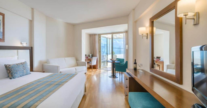 The Golden Bay Beach Hotel is an exclusive 5-star luxury hotel, set in mature landscaped gardens on the beautiful island of Cyprus. Perfectly situated at the edge of Larnaca tourist area, the Hotel is just 10 km from the city centre and 15 km from Larnaca International Airport. Instilled with a blend of Mediterranean colour and culture, the Golden Bay Beach 5 star Hotel in Larnaca is renowned for its excellent facilities, luxurious surroundings, impeccable hospitality and haute cuisine.Datorita dinamicitatii domeniului disponibilitatea ofertelor se modifica de la un moment la altul. De aceea ofertele sunt valabile in limita locurilor disponibile. Agentia nu este responsabila pentru eventualele neconcordante care pot aparea intre informatiile privind tarifele si alte detalii din site si informatiile primite in agentie. In aceste cazuri vor avea prioritate, intotdeauna, informatiile primite in agentie.