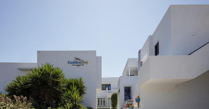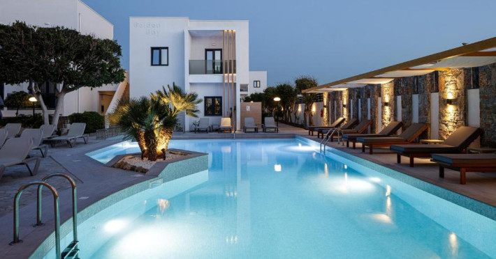 Golden Bay Hotel & Bungalows este o proprietate de 4 stele situată în Gournes (Creta-Heraklion) care oferă camere cu vedere la mare, un restaurant, o piscină în aer liber și o terasă cu șezlonguri și umbrele de soare. Proprietatea are servicii de recepție cu program non - stop și închirieri auto. Se oferă acces gratuit la internet Wi-fi în spațiile publice. Parcarea este disponibilă la proprietate gratuit.