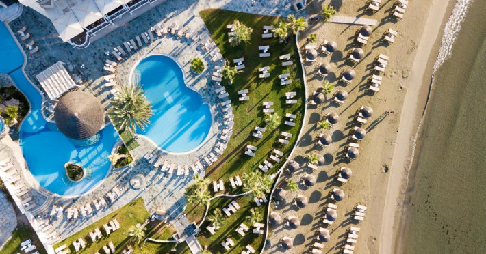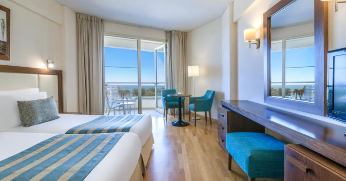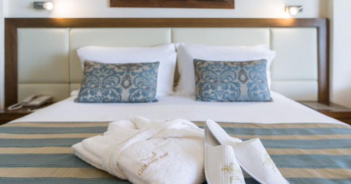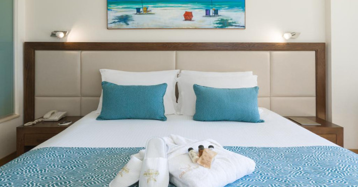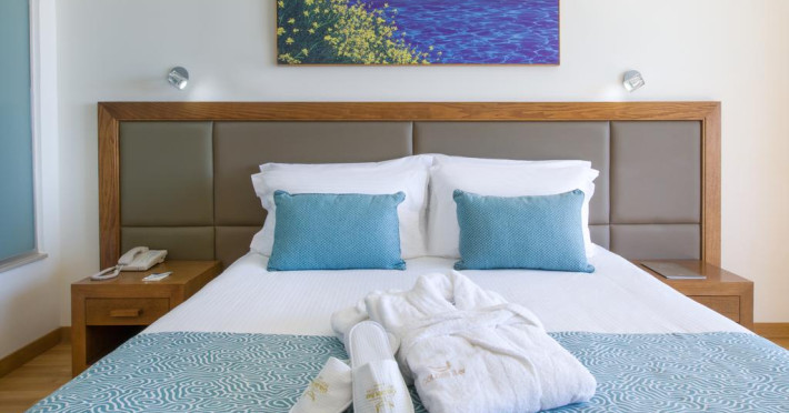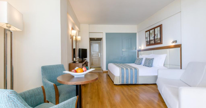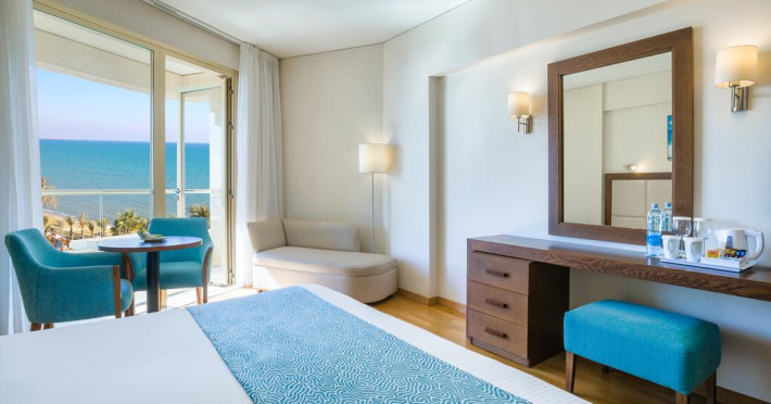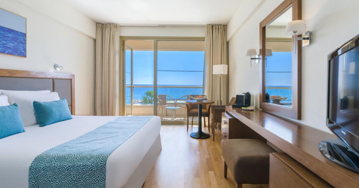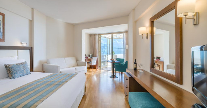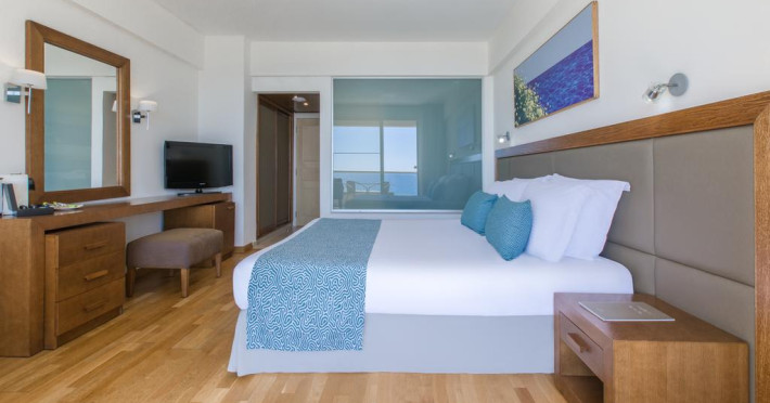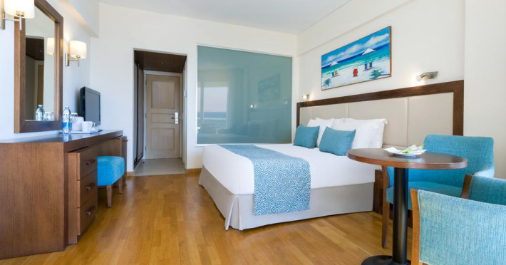 Unele camere au balcon cu vedere la mare sau la piscină. În camere există baie cu cadă sau duș ce are în dotare foehn și articole de toaletă gratuite. Fiecare cameră dispune de un aparat pentru preparare cafea sau ceai, cană-fierbător și minibar. Oaspeții pot solicita serviciul de room service pentru a servi masa sau diverse băuturi. Oaspeții au acces gratuit la serviciul Wi-fi în camere. Curățenia in cameră se face zilnic. Anumite camere au zonă de relaxare cu canapea și cadă cu hidromasaj care asigură un plus de confort și răsfăț. Proprietatea oferă camere pentru familie cu o suprafață mai mare și un număr mai mare de paturi față de cele standard. Se pot rezerva de asemenea camere pentru nefumători.