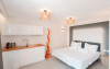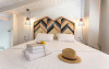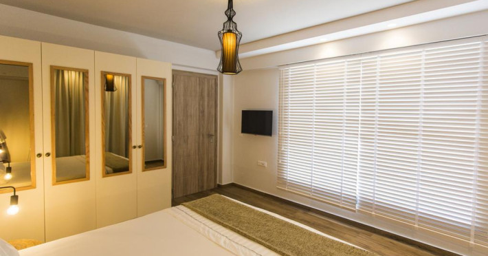 Sunt disponibile 9 camere. Unele camere au balcon, cu vedere la grădină, unde oaspeții se pot relaxa în compania celor dragi. În camere există baie cu cadă sau duș, foehn, articole de toaletă gratuite, precum și halate de baie și papuci. Fiecare cameră dispune de mașină pentru preparare cafea sau ceai și fierbător Camerele confortabile de la Golden Bay Suites And Maisonettes au pardoseală de gresie/ marmură, aer condiționat, Tv cu canale prin satelit și seif. Oaspeții au acces gratuit la serviciul Wi-fi în camere. Curățenia in cameră se face zilnic. Anumite camere au zonă de relaxare cu canapea și cadă cu hidromasaj care asigură un plus de confort și răsfăț. Fiecare unitate de cazare include o chicinetă utilată cu frigider, plită de gătit și ustensile de bucătărie. De asemenea, este disponibilă o zonă de luat masa. Proprietatea oferă camere pentru familie cu o suprafață mai mare și un număr mai mare de paturi față de cele standard. Se pot rezerva de asemenea camere pentru nefumători.
