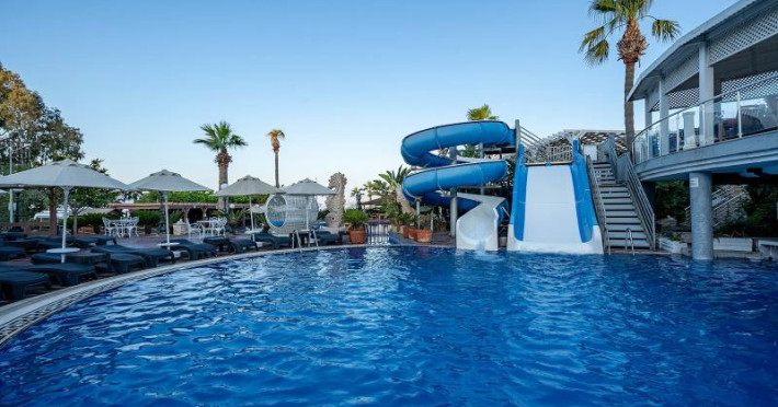 Goldean Beach ofera oaspetilor o gama variata de servicii precum: localizare pe plaja, la numai 80 de metri de mare, piscina in aer liber, topogane cu apa, si plaja privata unde nisipul fin se imbina cu pietricelele. De asemnea, acesta mai dispune si de un mini club pentru copii, sauna, zona de SPA si baie turceasca.
