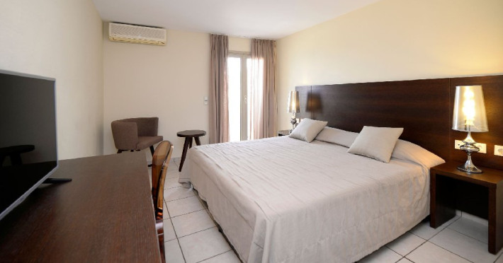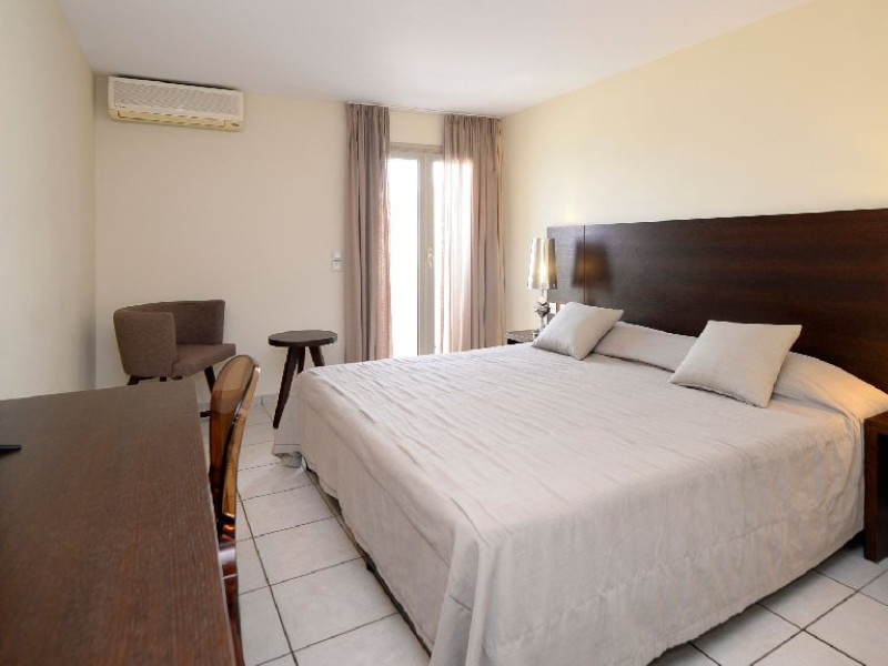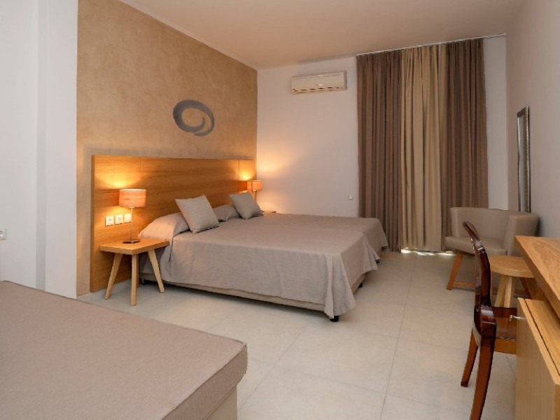 Dotari camere: Camerele hotelului sunt decorate modern, cu un design minimalist si confort sporit. Fiecare unitate include facilitati precum aer conditionat, TV cu ecran plat, frigider, seif (contra cost), balcon cu vedere la mare sau imprejurimi, baie privata cu dus si uscator de par, si acces Wi-Fi. Tipurile de camere includ camere duble standard, camere cu vedere la mare sau camere la ultimul etaj cu privelisti panoramice.