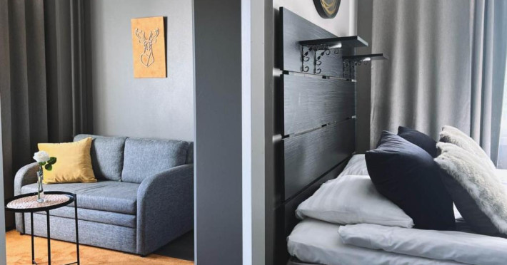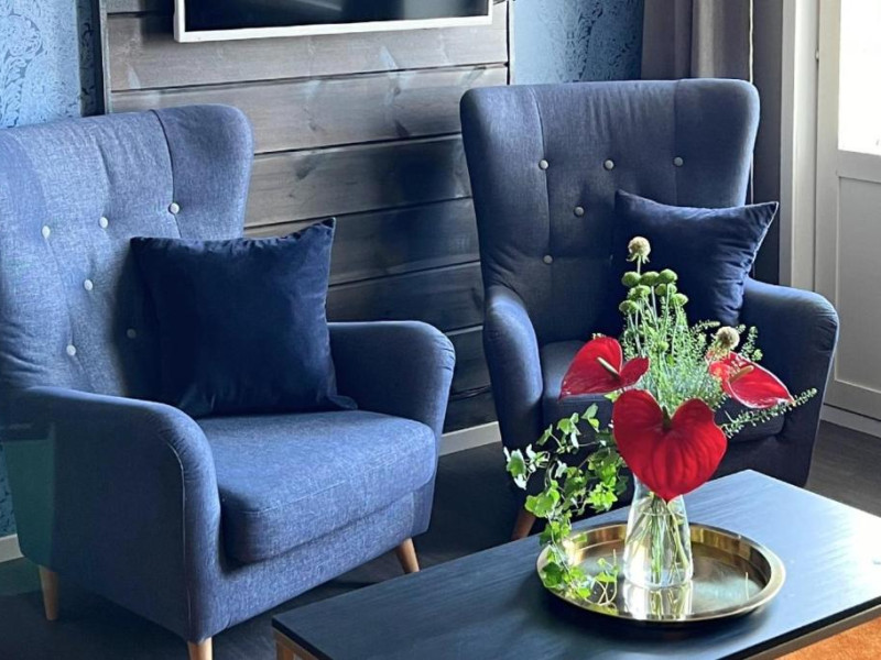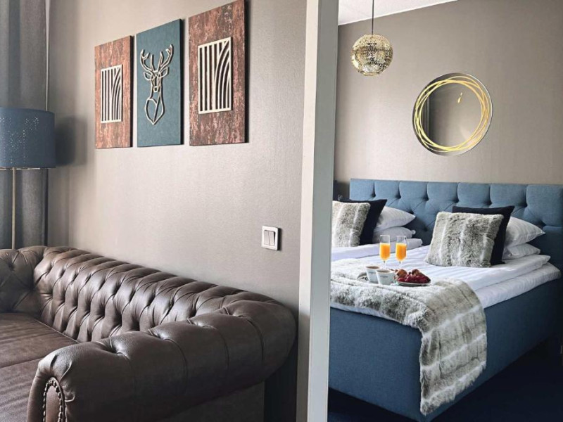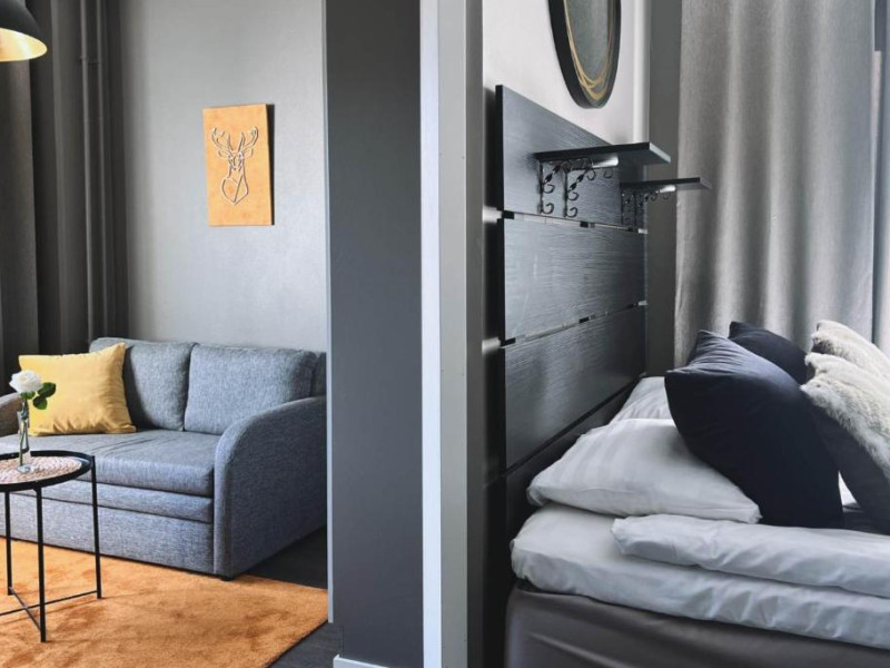 Fiecare suită este dotată cu bucătărie complet utilată, zonă de dining și living separat, perfecte pentru familii sau călătorii prelungite. Designul scandinav minimalist și finisajele premium creează o atmosferă caldă și primitoare, in contrast cu peisajul arctic din exterior.