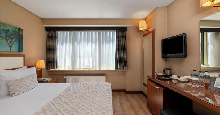 Property Location Centrally located in Istanbul, Istanbul Golden City Hotel is within a 15-minute walk of Mixer Art Gallery and Egyptian Bazaar. This hotel is 1.5 mi (2.3 km) from Süleymaniye Mosque and 1.7 mi (2.7 km) from Grand Bazaar. Distances are displayed to the nearest 0.1 mile and kilometer. Golden Horn - 0.4 km / 0.3 mi Galata Tower - 0.5 km / 0.3 mi Galata Bridge - 0.6 km / 0.4 mi Bosphorus - 0.7 km / 0.5 mi Istiklal Avenue - 0.7 km / 0.5 mi Istanbul Cruise Ship Terminal - 0.7 km / 0.5 mi Pera Palace Hotel - 1.1 km / 0.7 mi Mixer Art Gallery - 1.1 km / 0.7 mi Egyptian Bazaar - 1.2 km / 0.8 mi Galataport - 1.3 km / 0.8 mi Eminönü Square - 1.4 km / 0.9 mi Süleymaniye Mosque - 1.5 km / 0.9 mi Istanbul Museum of Modern Art - 1.6 km / 1 mi Eminonu Pier - 1.7 km / 1.1 mi Grand Bazaar - 2 km / 1.3 mi The nearest airports are: Istanbul Sabiha Gokcen Intl. Airport (SAW) - 45.7 km / 28.4 mi Istanbul Airport (IST) - 38.8 km / 24.1 mi The preferred airport for Istanbul Golden City Hotel is Istanbul Airport (IST). Rooms Make yourself at home in one of the 62 guestrooms featuring minibars and LCD televisions. Complimentary wireless internet access keeps you connected, and satellite programming is available for your entertainment. Private bathrooms with showers feature rainfall showerheads and designer toiletries. Conveniences include phones, as well as laptop-compatible safes and desks. Dining Grab a bite at Peninsula Restaurant, a restaurant which features a bar/lounge and an ocean view. You can also stay in and take advantage of the 24-hour room service. Buffet breakfasts are available daily from 7:30 AM to 11:00 AM for a fee. Business, Other Amenities Featured amenities include complimentary wired internet access, a computer station, and express check-in. A roundtrip airport shuttle is provided for a surcharge (available 24 hours), and self parking (subject to charges) is available onsite.Property Location Centrally located in Istanbul, Istanbul Golden City Hotel is within a 15-minute walk of Mixer Art Gallery and Egyptian Bazaar. This hotel is 1.5 mi (2.3 km) from Süleymaniye Mosque and 1.7 mi (2.7 km) from Grand Bazaar. Distances are displayed to the nearest 0.1 mile and kilometer. Golden Horn - 0.4 km / 0.3 mi Galata Tower - 0.5 km / 0.3 mi Galata Bridge - 0.6 km / 0.4 mi Bosphorus - 0.7 km / 0.5 mi Istiklal Avenue - 0.7 km / 0.5 mi Istanbul Cruise Ship Terminal - 0.7 km / 0.5 mi Pera Palace Hotel - 1.1 km / 0.7 mi Mixer Art Gallery - 1.1 km / 0.7 mi Egyptian Bazaar - 1.2 km / 0.8 mi Galataport - 1.3 km / 0.8 mi Eminönü Square - 1.4 km / 0.9 mi Süleymaniye Mosque - 1.5 km / 0.9 mi Istanbul Museum of Modern Art - 1.6 km / 1 mi Eminonu Pier - 1.7 km / 1.1 mi Grand Bazaar - 2 km / 1.3 mi The nearest airports are: Istanbul Sabiha Gokcen Intl. Airport (SAW) - 45.7 km / 28.4 mi Istanbul Airport (IST) - 38.8 km / 24.1 mi The preferred airport for Istanbul Golden City Hotel is Istanbul Airport (IST). Rooms Make yourself at home in one of the 62 guestrooms featuring minibars and LCD televisions. Complimentary wireless internet access keeps you connected, and satellite programming is available for your entertainment. Private bathrooms with showers feature rainfall showerheads and designer toiletries. Conveniences include phones, as well as laptop-compatible safes and desks. Dining Grab a bite at Peninsula Restaurant, a restaurant which features a bar/lounge and an ocean view. You can also stay in and take advantage of the 24-hour room service. Buffet breakfasts are available daily from 7:30 AM to 11:00 AM for a fee. Business, Other Amenities Featured amenities include complimentary wired internet access, a computer station, and express check-in. A roundtrip airport shuttle is provided for a surcharge (available 24 hours), and self parking (subject to charges) is available onsite.