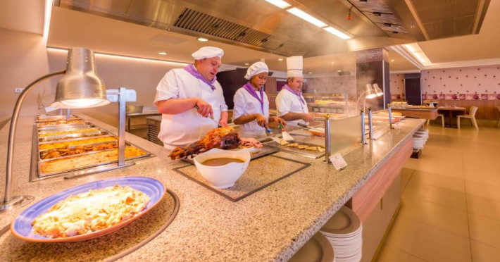 Restaurantul tip bufet al hotelului servește mancăruri internaționale și oferă bucătărie deschisă. Există, de asemenea, un bar și un snack bar care servesc băuturi și mese ușoare pe tot parcursul zilei.