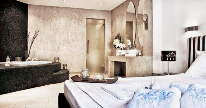 Facilitati camere: Dormitorul principal, deosebit de spatios, cu o suprafata de 25 mp, dispune de o cada cu jacuzzi si este amenajat special pentru a petrece un sejur intr-o atmosfera romantica. Celelalte doua dormitoare de 15 mp, sunt concepute si decorate in acelasi stil. Ambele au sistem de aer conditionat iar unul dintre ele are acces direct la gradina.Camera de zi ce se intinde pe o suprafata de 50 mp, este o zona open space cu bucatarie si zona de servire a mesei.