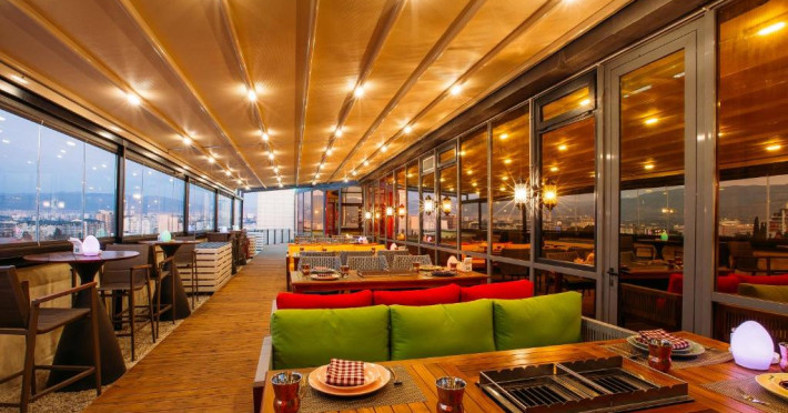 Oaspeții iși pot lua masa la restaurantul georgian hindus de pe acoperiș, care are o terasă. Se pot bucura de muzică live și seri de dans. La bar sunt oferite o varietate de băuturi.