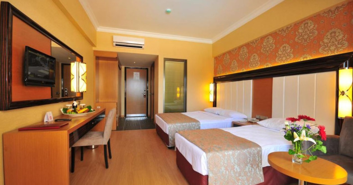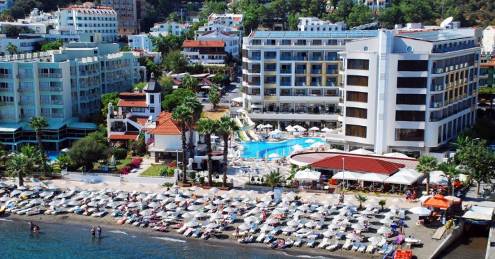 Localizare: La 3 km de Marmaris, 5 km Icmeler si 90 km de aeroportul Dalaman. Facilitati hotel: Restaurant principal si a la carte, baruri, piscina exterioara/interioara, sala TV, parcare, sauna, baie cu aburi, fitness, tenis de masa, dart, animatie, discoteca, baie turceasca, masaj, jacuzzi, biliard, internet cafe, loc de joaca. Facilitati camere: Baie, uscator de par, AC , TV, telefon, minibar, seif, balconLocalizare