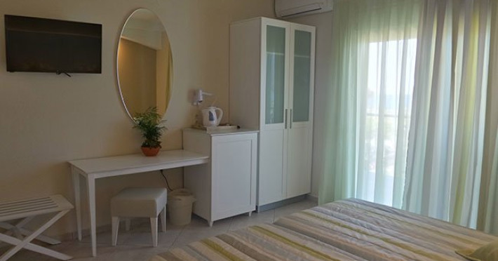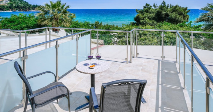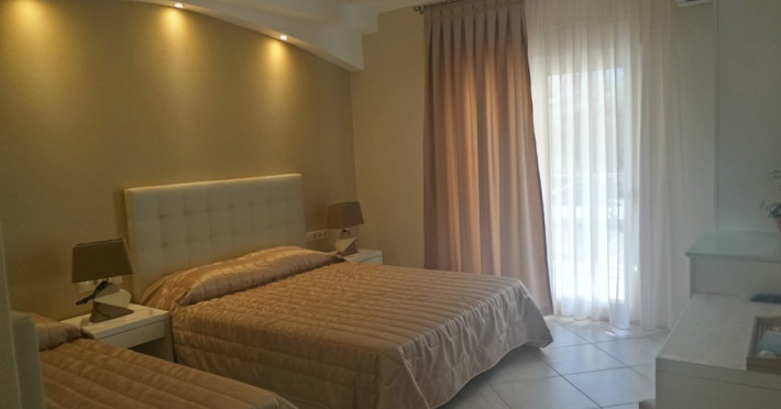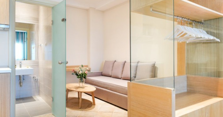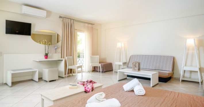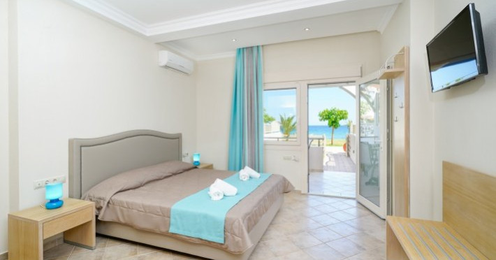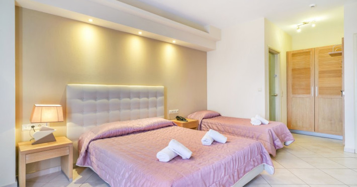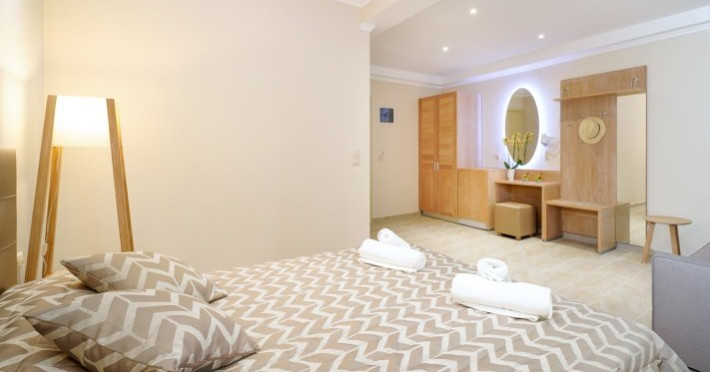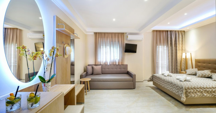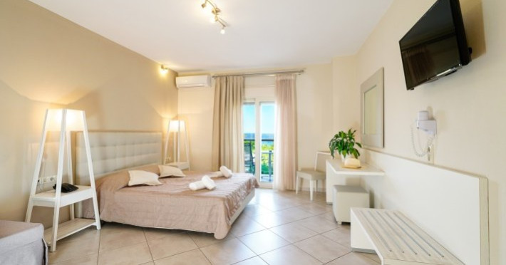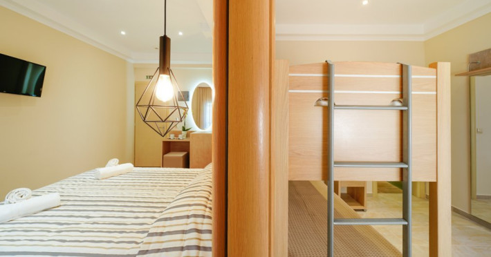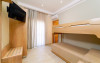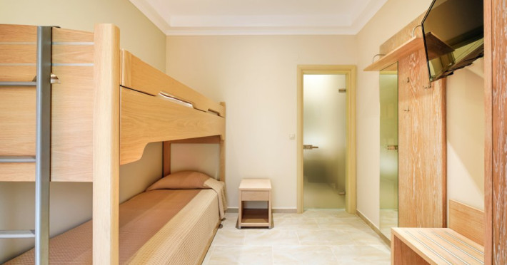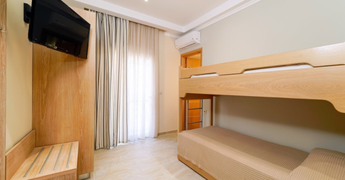 Camerele Cvadruple: sunt compuse dintr-un singur spatiu generos si modern, cu un pat dublu si doua canapele sau o canapea extensibila.Suita Junior cu vedere la mare: 28 m2, cu un pat matrimonial si canapea extensibila.