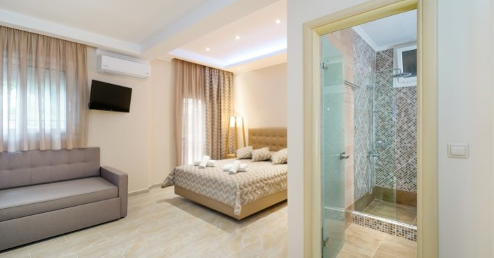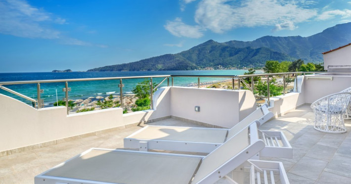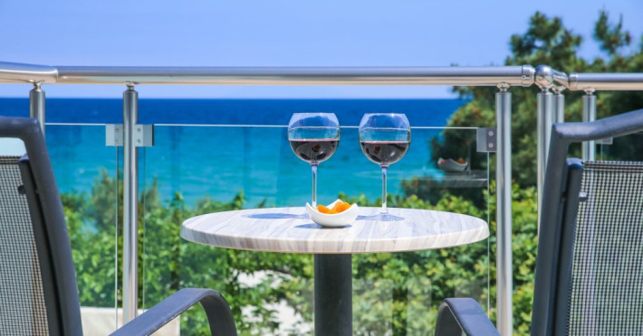 Suita Luxury cu vedere la mare si Jacuzzi: se afla la parter, are 38 m2, cu un pat matrimonial si canapea extensibila.