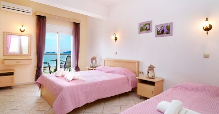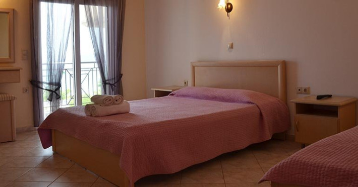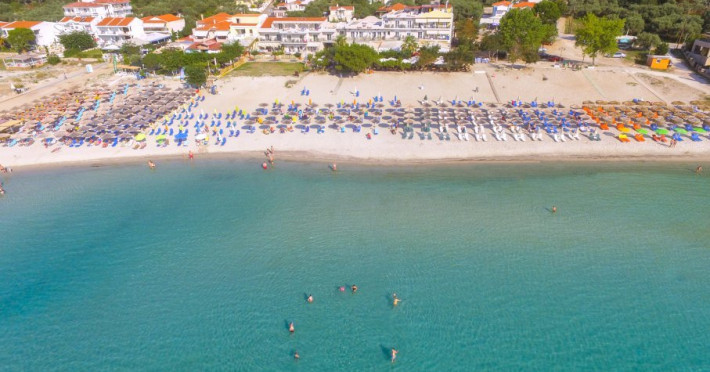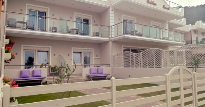Locatie: Hotelul Golden Sand se afla in Golden Beach, pe plaja, la 11 km de portul Limenas, intre Panagia si Skala Potamia. Facilitati camere: Hotelul este format din 19 camere, ce pot primi pana la 4 persoane. Toate camerele sunt dotate cu: AC, TV, telefon, fierbator, frigider, seif, baie cu dus, balcon cu vedere la mare sau munte.Curatenia se face in fiecare zi, asternuturile se schimba o data la 3 zile, iar prosoapele la 2 zile.