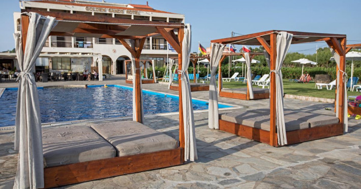 Exista de asemenea zona de parcare pentru masini si motociclete, Piscina cu dusuri, umbrele si sezlonguri, Piscina pentru copii langa piscina adultilor.